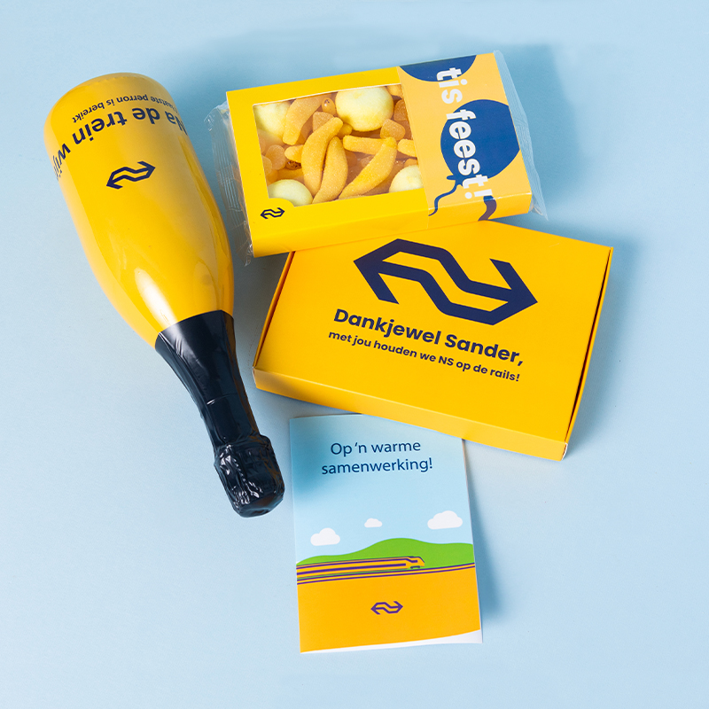 Heb jij even geluk: personalisatie is ons supertalent! Cadeaus, kaarten en verpakkingen kunnen volledig worden gepersonaliseerd in jullie huisstijl. Ook denken we mee over tone of voice, thema’s en concepten die passen bij jullie merk en cultuur.Hoe is de bezorging geregeld?